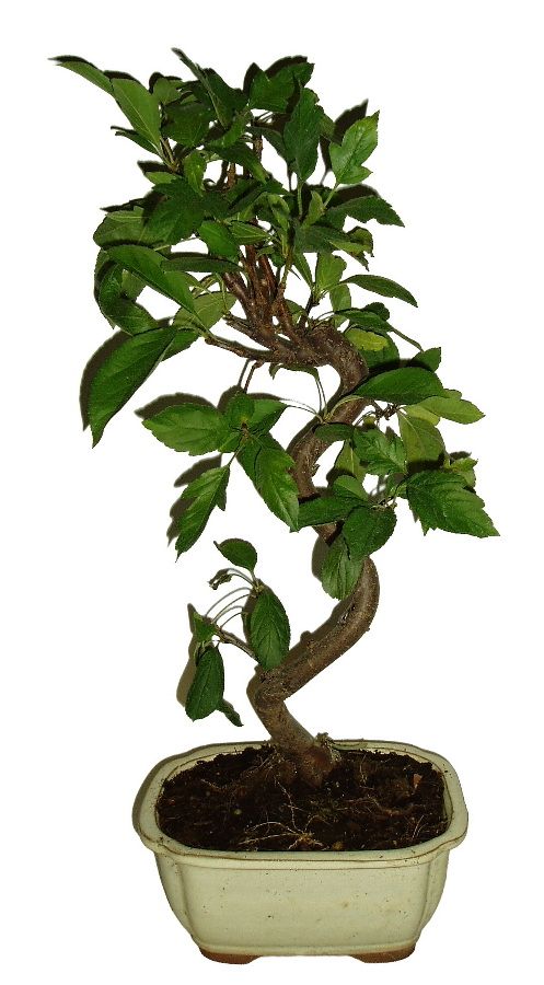 Malus - krásná třešňoplodá jabloň, ideální do všech zahrad, kde je život. Zahradu obohatí svým krásným květem a plodem. Plody jsou výrazně červené. Při nedostatečné zálivce svěsí listy. Hnojení dvakrát do měsíce. Jednoduše se tvarují nové výhonky, než zdřevnatí. Pokud máte rádi barvy a hezké zahrady originální, neváhejte. Pohled je vždy úchvatný na plodící bonsai.