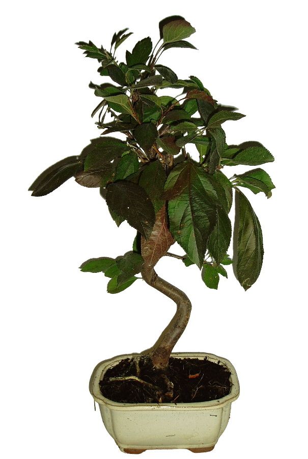 Malus - krásná třešňoplodá jabloň, ideální do všech zahrad, kde je život. Zahradu obohatí svým krásným květem a plodem. Plody jsou výrazně červené. Při nedostatečné zálivce svěsí listy. Hnojení dvakrát do měsíce. Jednoduše se tvarují nové výhonky, než zdřevnatí. Pokud máte rádi barvy a hezké zahrady originální, neváhejte. Pohled je vždy úchvatný na plodící bonsai.