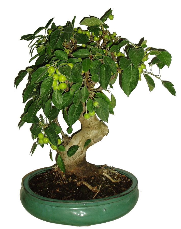 Malus - krásná třešňoplodá jabloň, ideální do všech zahrad, kde je život. Zahradu obohatí svým krásným květem a plodem. Plody jsou výrazně červené. Při nedostatečné zálivce svěsí listy. Hnojení dvakrát do měsíce. Jednoduše se tvarují nové výhonky, než zdřevnatí. Pokud máte rádi barvy a hezké zahrady originální, neváhejte. Pohled je vždy úchvatný na plodící bonsai.