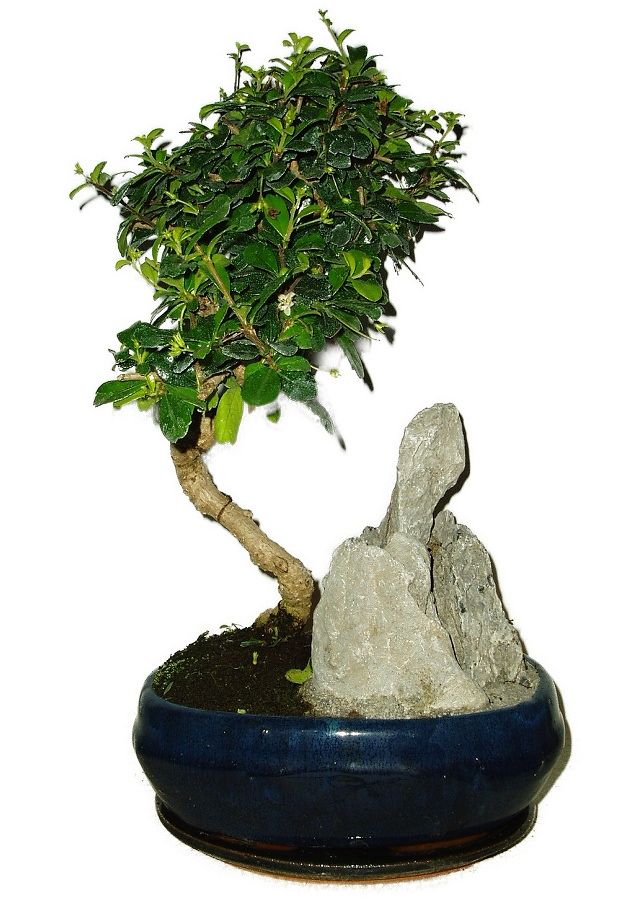 Velmi oblíbená bonsaje pro svoji nenáročnost, vzhled a hezké květy. Výborně tvarovatelná. Výška bonsaje 34 cm a stáří bonsaje 10 let.