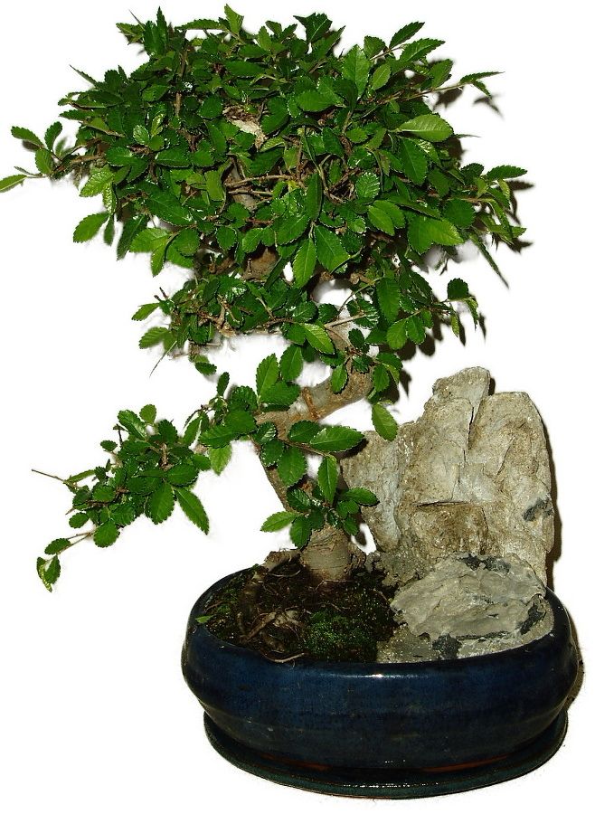 Zelkova jedna z nejoblíbenějších bonsají, jelikož je nenáročná, netrpí na škůdce, vydrží mnoho a velmi se podobá klasickému lesu. Výška pokojové bonsaje je 36 cm a stáří 10 let.