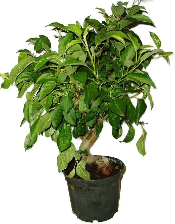 Malus - krásná třešňoplodá jabloň, ideální do všech zahrad, kde je život. Zahradu obohatí svým krásným květem a plodem. Plody jsou výrazně červené. Při nedostatečné zálivce svěsí listy. Hnojení dvakrát do měsíce. Jednoduše se tvarují nové výhonky, než zdřevnatí. Pokud máte rádi barvy a hezké zahrady originální, neváhejte. Pohled je vždy úchvatný na plodící bonsai.